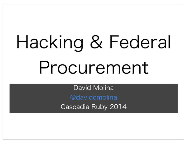 When we think of hacking we usually don't think of federal procurement. We think of building things from scratch, software, hardware, etc in a startup company, as a freelancer, OSS, etc. But if we're ever to renew our driver's license from our iPhones, reduce the federal deficit and return a"government by the people and for the people" we should consider offering our expertise to our government and compete on bids and build things that are useful and matter.