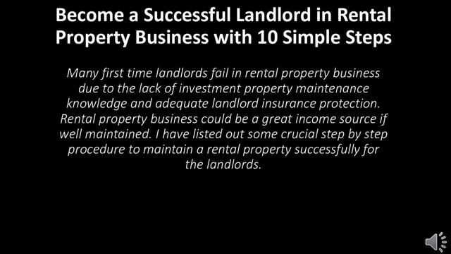 Becoming successful in investment property business is not an easy task. Many landlords fall into the financial crisis due to the lack of proper maintenance knowledge about rental property and inadequate landlord insurance. Here are 10 crucial tips to help landlords become successful in their rental property business.
