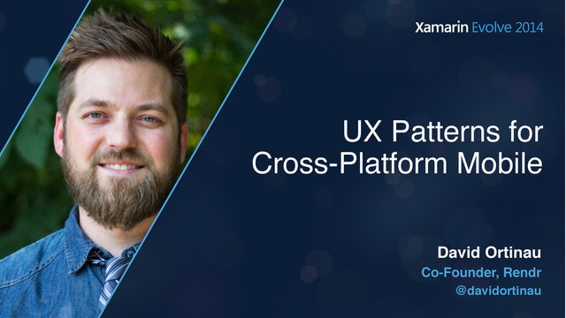 From 2014 Xamarin Evolve, we look at what UX Patterns are and some common patterns we need to work through in designing and implementing cross platform designs.