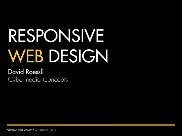 users; •URL structure is important; •Load time is important (but it will one day be less of an issue); •Websites need to evolve in an agile way; and new hardware is never far ahead… WHY RWD MAKES SENSE GENEVA WEB GROUP • 27 FEBRUARY 2013