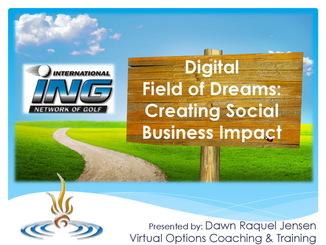Social Media Speaker and Digital Marketing Coach Dawn Raquel Jensen speaks at the ING (International Network of Golf) Spring Conference 2015 on using and building digital embassies and outposts to establish and create a digital presence and establish a platform for business.