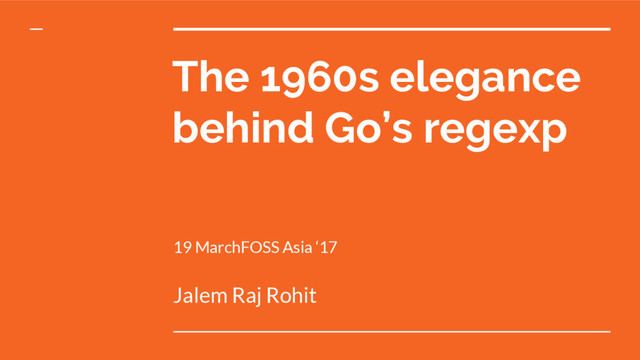 The 1960s elegance behind Go’s regexp 19 MarchFOSS Asia ‘17