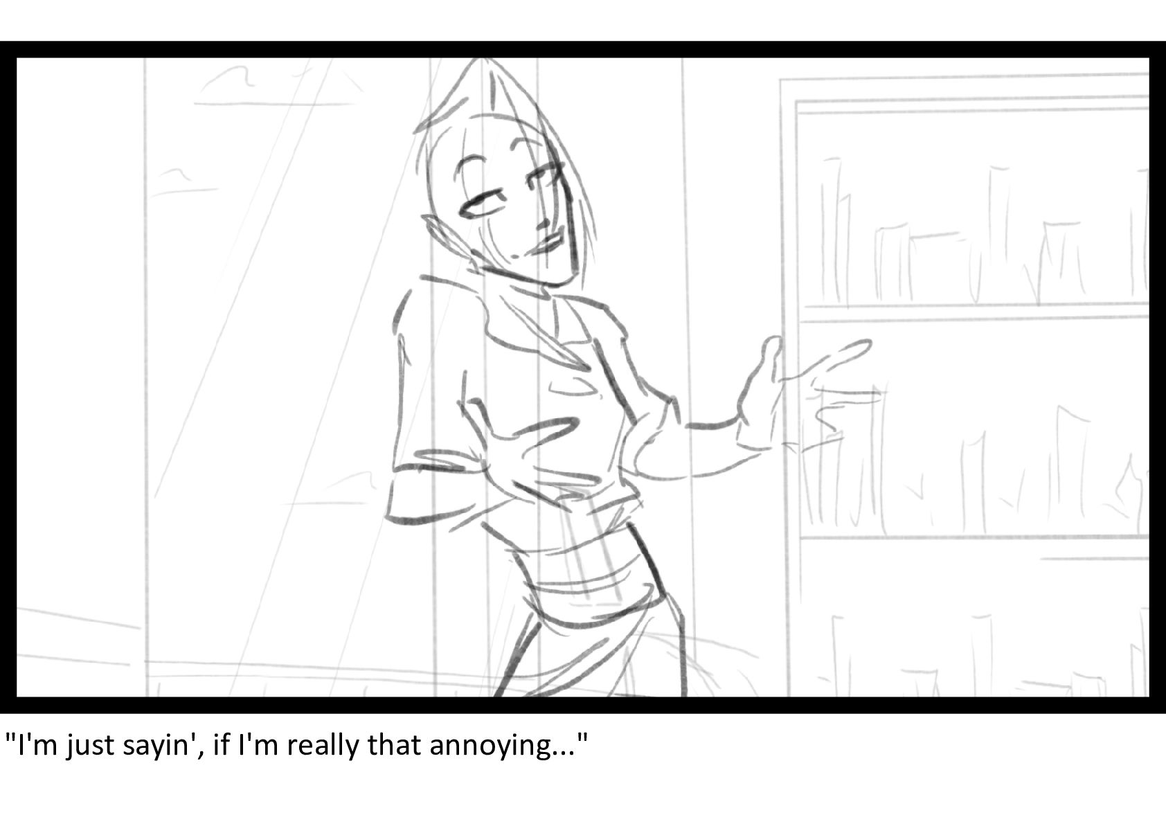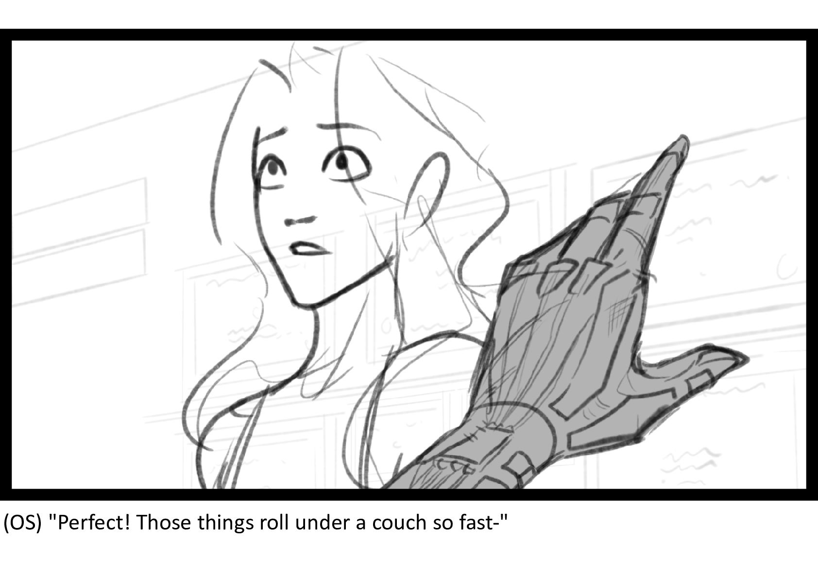 (OS) "Perfect! Those things roll under a couch so fast-"