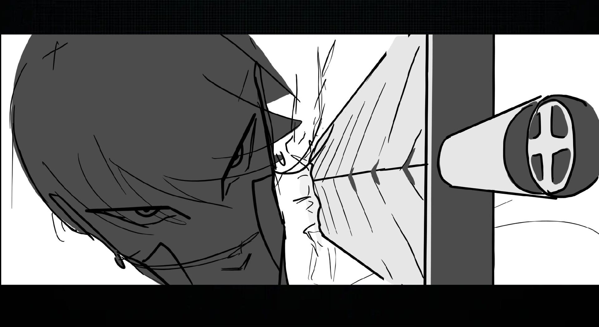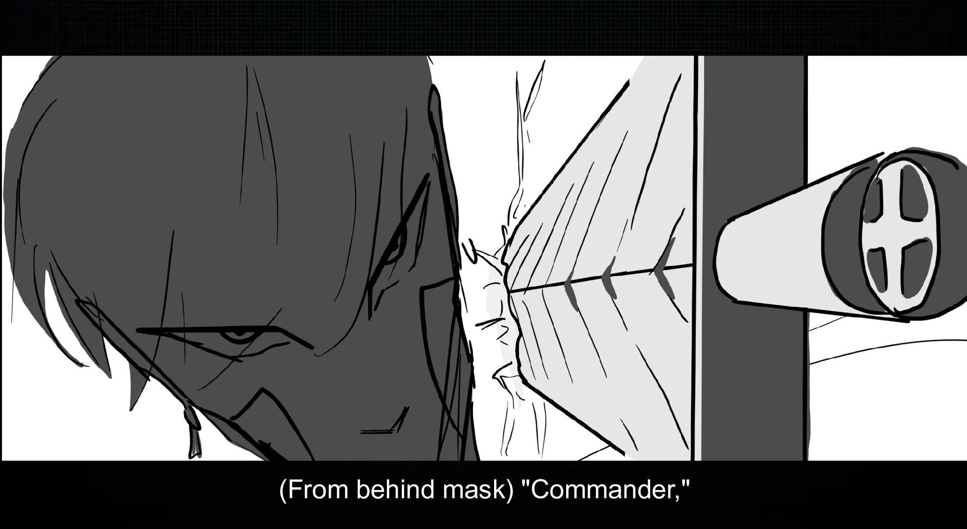 (From behind mask) "Commander,"