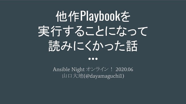 他作Playbookを 実行することになって 読みにくかった話 Ansible Night オンライン! 2020.06 山口大地 (@dayamaguchi1)