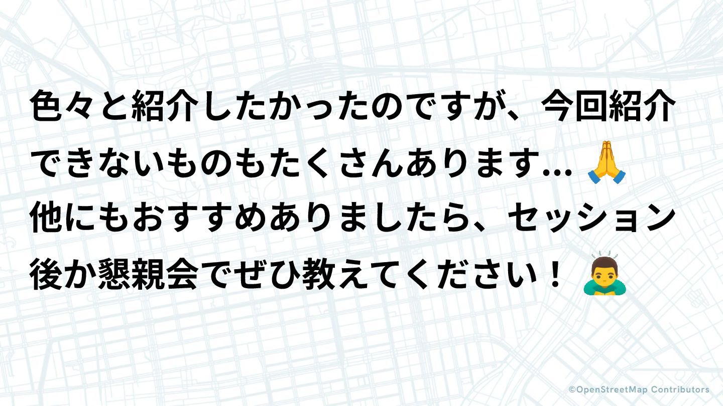 ⾊々と紹介したかったのですが、今回紹介 できないものもたくさんあります... 🙏 他にもおすすめありましたら、セッション 後か懇親会でぜひ教えてください!