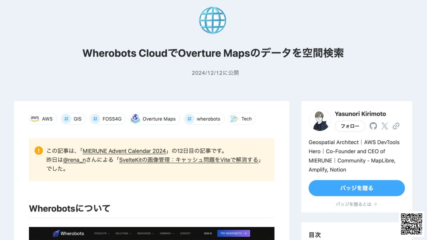 ス。Overture Maps‧Wherobots‧Fused‧AWS ‧NASA等が関わっていて、 Geospatialの世界最前線を知ること ができる。