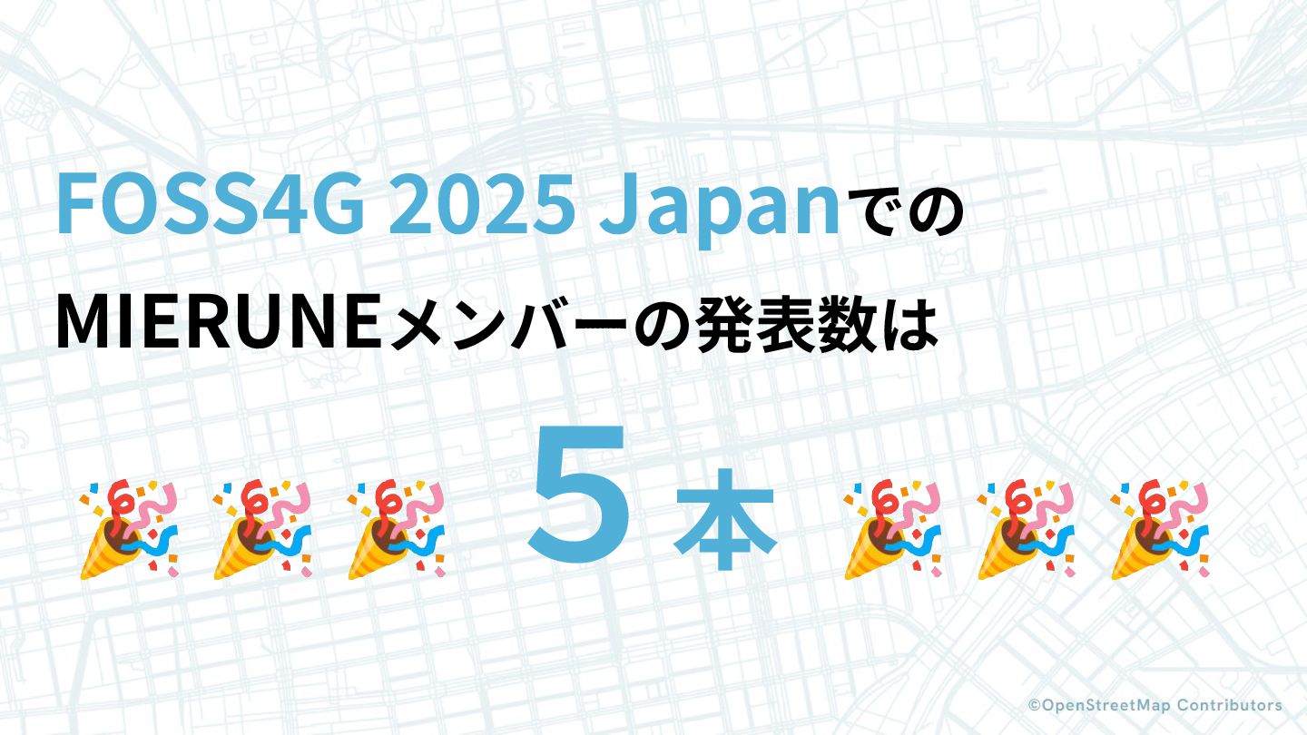 FOSS4G 2025 Japanでの MIERUNEメンバーの発表数は 🎉 🎉 🎉 5本 🎉 🎉