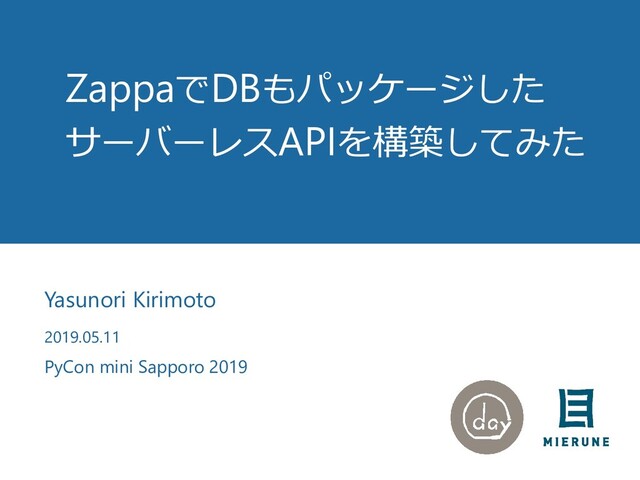 ZappaでDBもパッケージした サーバーレスAPIを構築してみた Yasunori Kirimoto 2019.05.11 PyCon mini Sapporo 2019