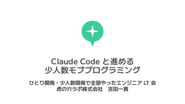 Claude Code と進める 少人数モブプログラミング ひとり開発・少人数開発で全部やったエンジニア LT 会 虎の穴ラボ株式会社 吉田一貴