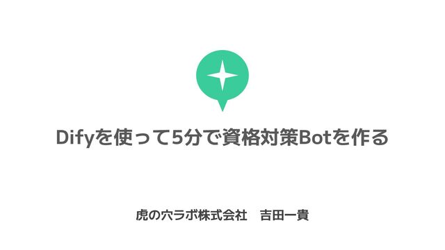 Difyを使って5分で資格対策Botを作る 虎の穴ラボ株式会社 吉田一貴
