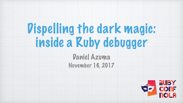 Presentation by Daniel Azuma at RubyConf 2017. Covers how to implement a basic debugger for Ruby programs, and discusses some techniques behind the Stackdriver Debugger for Ruby. See also the live coding artifact at https://github.com/dazuma/google-snippets/blob/master/mini-debug