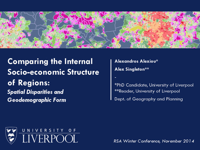 Geodemographic Form RSA Winter Conference, November 2014 Alexandros Alexiou* Alex Singleton** - *PhD Candidate, University of Liverpool **Reader, University of Liverpool Dept. of Geography and Planning