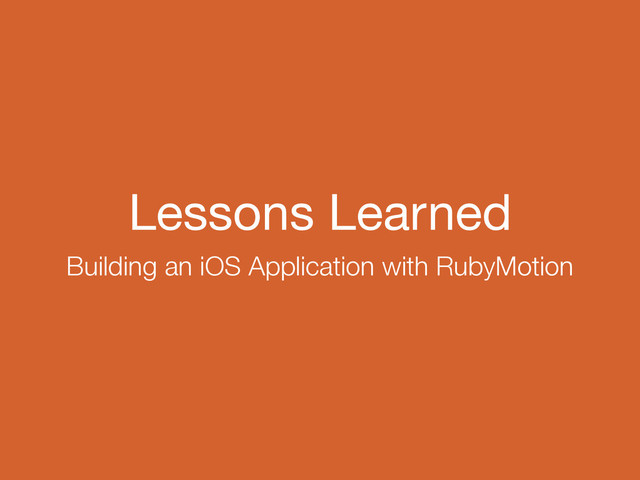 Let's explore practices and solutions derived from the development of dscovr, a greenfield RubyMotion project a year in the making. Devon will share the lessons learned, and what worked best for his team, during the process of building an app with RubyMotion from concept to launch. Based primarily from the perspective of a Ruby on Rails developer, we'll cover tips on workflow, working with designers, continuous integration, and more!