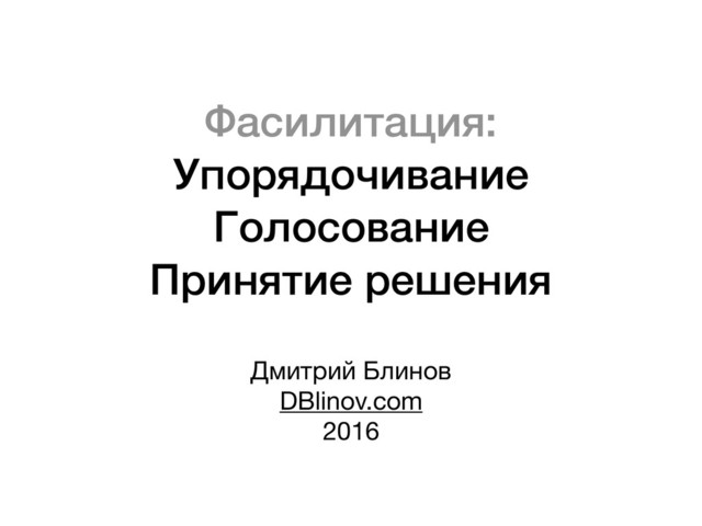 Вы собрали большое количество идей и обсудили их в группе. Теперь полезным будет их упорядочить: сгруппировать, отранжировать, отсеять лишние. Для этого можно использовать голосование или другие подходы. Голосование может быть полезным при принятии решения группой, однако это можно сделать и по-другому. Эти слайды используются в тренинге по Фасилитации.