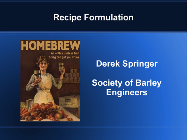 good recipe. • Extract or all grain being better. • Teaching you specific formulas for various calculations (IBU/extraction/etc). – That's way too much to cover in one night! • Specific techniques to use when brewing.