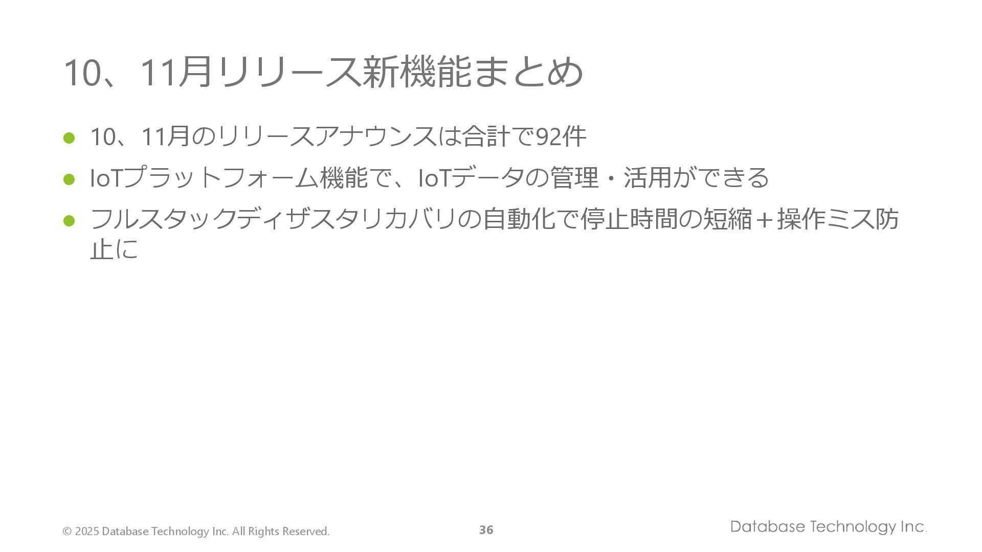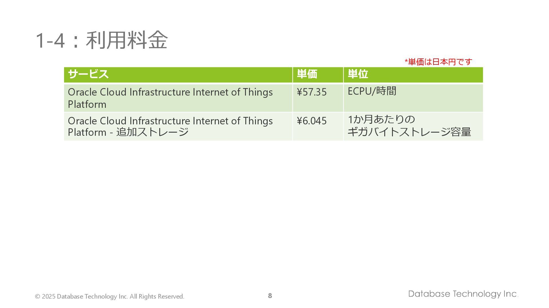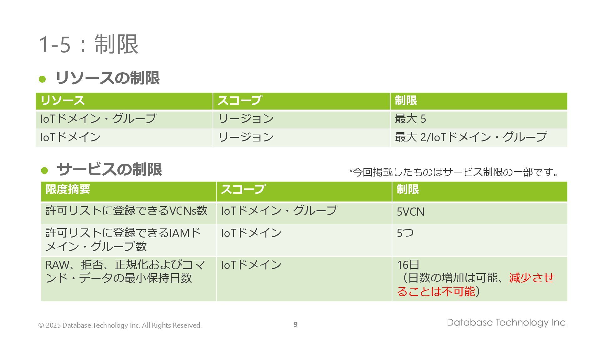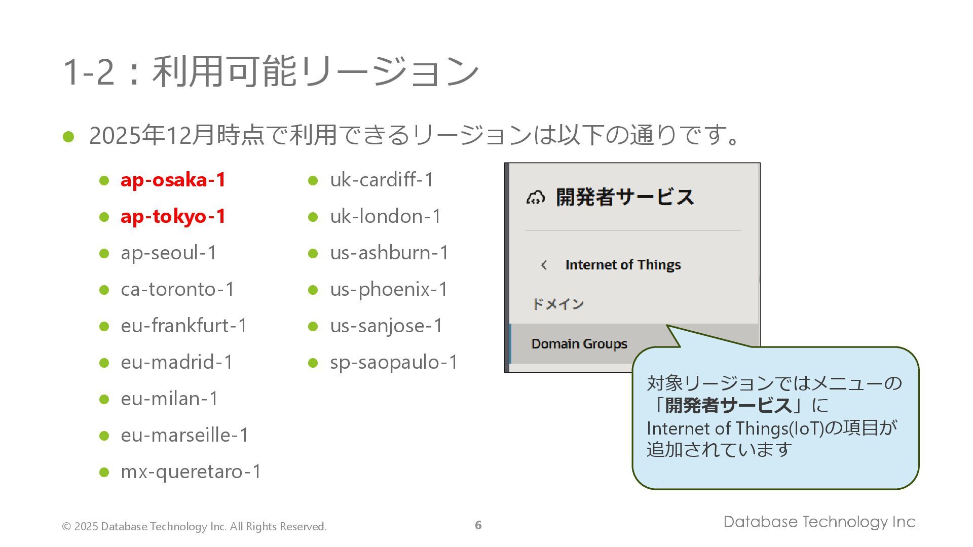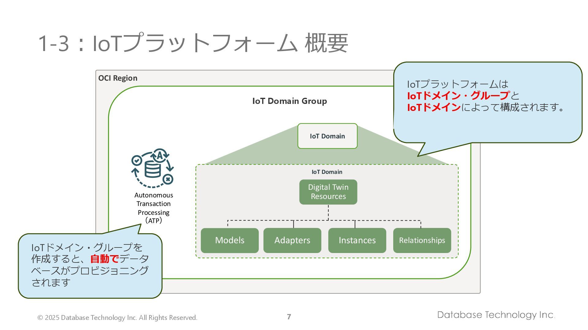 Oracle REST Data Service)での活用 IoT Domain Group ATP IoT Domain Schema Json Collection Schema Object IoT Domain Data Tables IoT Domain WorkSpace Schema etc… Customer Objects User Oracle REST Data Services Identity Domain Oracle Identity Cloud Service Integrated Application ⚫ 利用方法 ①:Identity Domainで認証用アプリを 作成し、IoTアクセス用の設定を行 う ②:Identity Domainで認証を構成し、 ORDSからIoTデータAPIに安全にア クセスできるようにする ③: 認証用アプリの認証情報でトーク ンを取得する ④:③で作成したトークンを利用し、 ORDSからIoTデータAPIを実行 ④ ① ③ ②