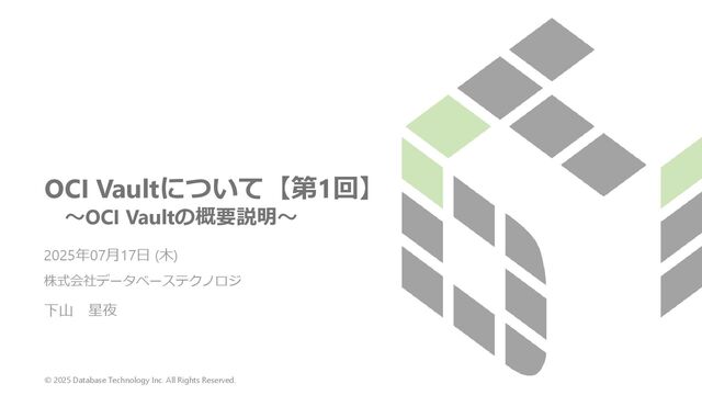1. © 2025 Database Technology Inc. All Rights Reserved. 株式会社データベーステクノロジ OCI