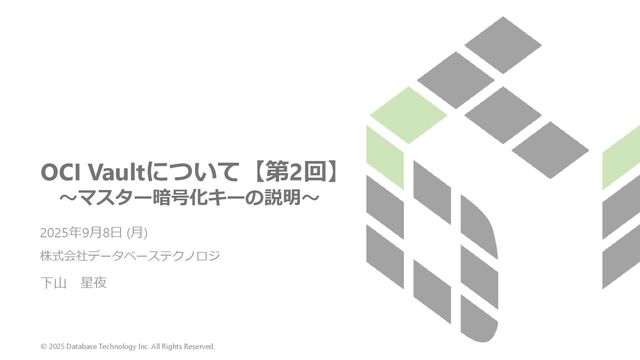 1. © 2025 Database Technology Inc. All Rights Reserved. 株式会社データベーステクノロジ OCI