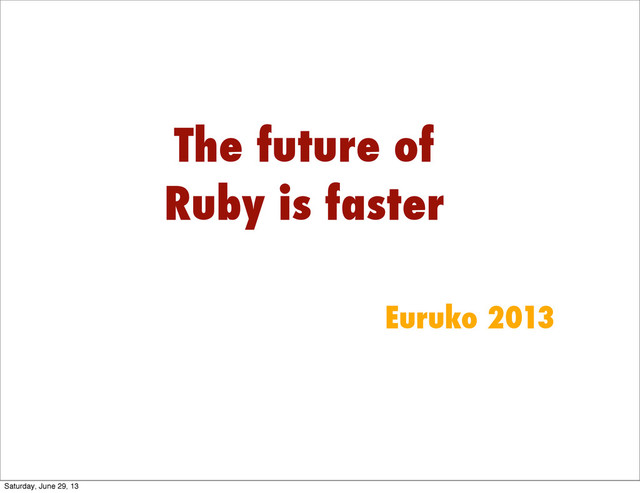 The future of Ruby is faster Euruko 2013 Saturday, June