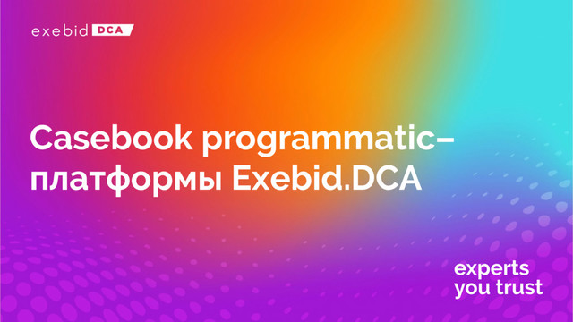 одном интерфейсе. Система управления рекламой для агентств «Мы интегрирированы со всеми биржами, работающими с RTB. Де-факто EXEBID - это единствен- ная биржа, у которой показатели по стоимости показа, клика и дальней-шей конверсии сопоставимы с глобальными игроками. На наш взгляд технологически EXEBID - самый сильный игрок на российском рынке RTB». Владимир Кобзев Директор по маркетингу Отзыв:
