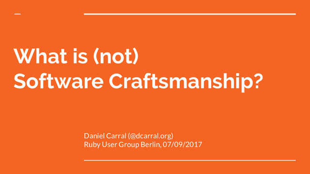 What do we mean by Software Craftsmanship? What not? How and why was it born? Why does it matter?