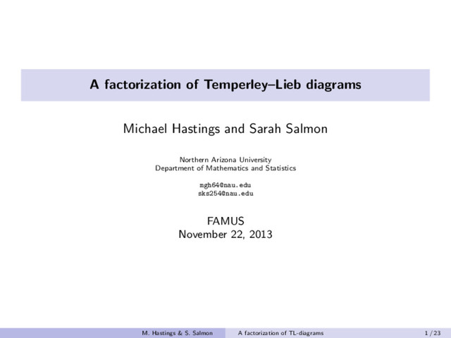 This talk was given by my undergraduate research students Michael Hastings and Sarah Salmon on November 22, 2013 at the Friday Afternoon Mathematics Undergraduate Seminar (FAMUS) at Northern Arizona University.
