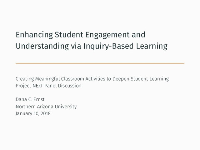 rich mathematics. 2. Opportunities to collaborate. 3. Instructor use of student thinking. Laursen et al. Rasmussen et al. Students should as much as possible be responsible for: 1. Guiding the acquisition of knowledge, 2. Validating the ideas presented (instructor not sole authority). 3