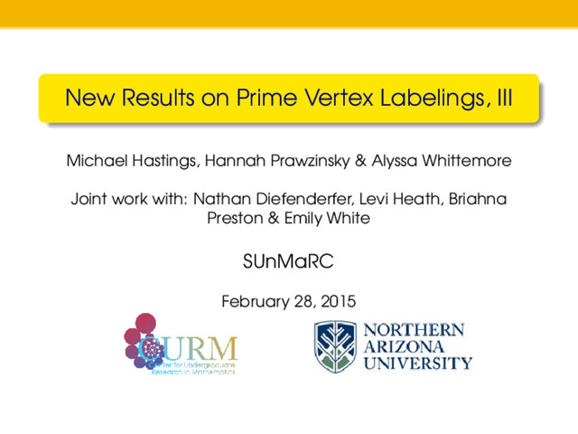 This talk was given by my undergraduate research students Michael Hastings, Hannah Prawzinsky, and Alyssa Whittemore on February 28, 2015 at the at the Southwestern Undergraduate Mathematics Research Conference (SUnMaRC) at the University of Texas at El Paso.