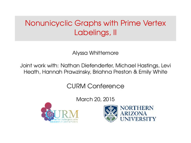 This talk was given by my undergraduate research student Alyssa Whittemore on March 20, 2015 at the 2015 MAA/CURM Spring Conference at Brigham Young University.