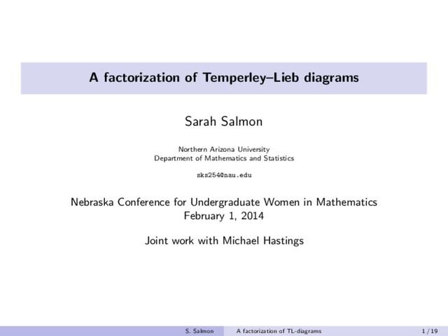 This talk was given by my undergraduate research student Sarah Salmon (Northern Arizona University) on February 1, 2014 at the Nebraska Conference for Undergraduate Women in Mathematics. This joint work with Michael Hastings.