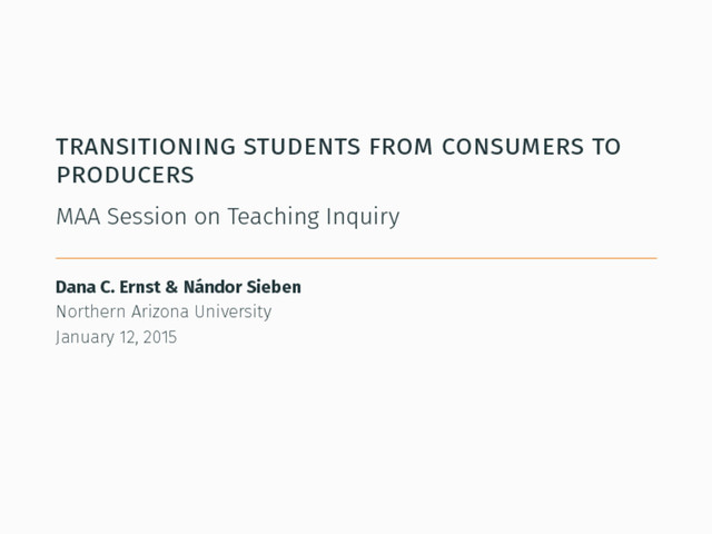 In response to assessment reports identifying weaknesses in communication and reasoning of junior and senior mathematics majors, we have developed a 3-credit semester-long course that is required for all first-year mathematics majors. The focus of this course is on reasoning and communication through problem solving and written mathematical arguments in order to provide students with more experience and training early in their university studies. The goal is for the students to work on interesting yet challenging multi-step problems that require almost zero background knowledge. The hope is that students will develop (or at least move in the direction of) the habits of mind of a mathematician. The problem solving of the type in the course is a fundamental component of mathematics that receives little focused attention elsewhere in our program. The course will be taught via an inquiry-based learning (IBL) approach with an explicit focus on students asking questions and developing conjectures. In this talk, we will describe the structure of the course and our plan for transitioning students from “consumers” of mathematics to “producers”.
