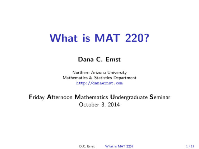 This talk was given at the Northern Arizona University Friday Afternoon Mathematics Undergraduate Seminar (FAMUS) on Friday, October 3, 2014.