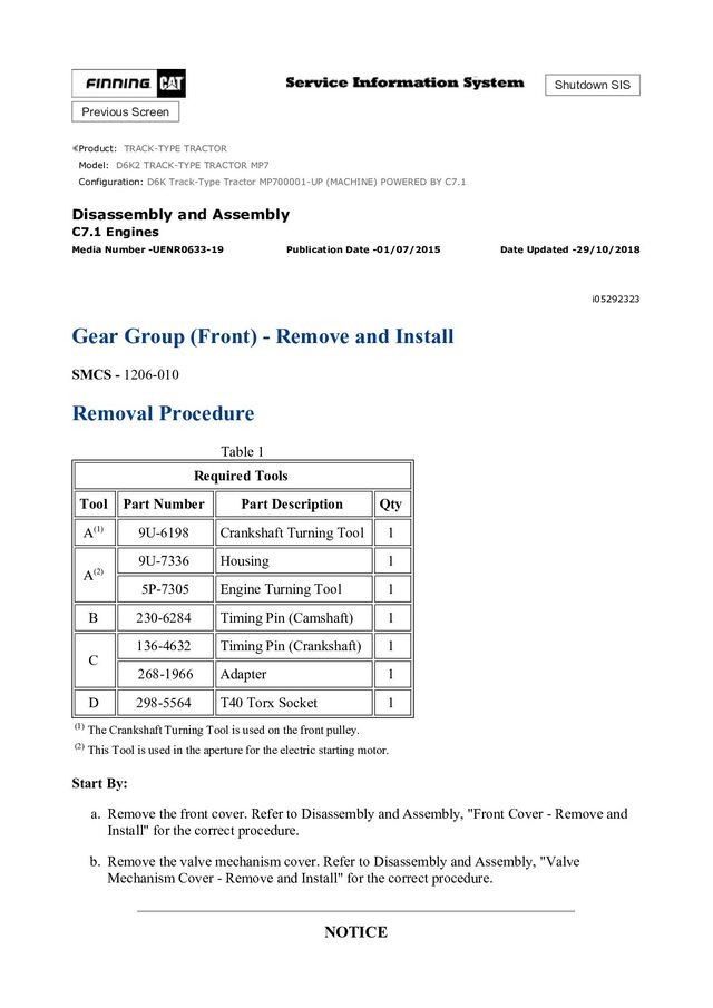 the idler gear for wear and damage. Refer to Specifications, "Gear Group (Front)" for more information. If necessary, replace the idler gear. 4. Clean hub (11) and inspect the hub for wear and damage. Refer to Specifications, "Gear Group (Front)" for more information. If necessary, replace the hub. 5. Lubricate hub (11) with clean engine oil. Install hub (10) into idler gear (3). Ensure that oil Hole (Z) is position as shown in the Illustration 4. Ensure that the timing marks are toward the front of the idler gear. 6. Align the timing marks on idler gear (3), camshaft gear (5), fuel injection pump gear (4). Refer to the Illustration 5. Install the assembly of idler gear (3) and hub (11). 7. Clean plate (9) and inspect the plate for wear and damage. If necessary, replace the plate. 8. Lubricate plate (9) with clean engine oil. Align the holes in plate (9) with the holes in hub (11). Install the plate in the original orientation.