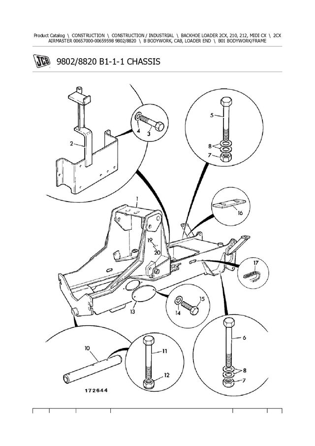 141/00577P <M657461 Casting nose 1 1 141/00952P Casting nose 1 2 141/21800 Grille 1 3 141/00412 Superseded Cover engine, left hand 1 3 141/00776 Superseded Cover engine, left side 1 3 142/00687 Cover engine, left hand 1 3A 141/00593 Clip spring 2 per side 2 4 141/00413 Superseded Cover engine, right side 1 4 142/00686 Cover engine, right hand 1 4A 141/00593 Clip spring 2 per side 2 5 141/20300 <M657461 Bonnet See Note 1 1 5 141/50600 Bonnet 1 5 141/48100 <M657510 Bonnet air-conditioning m/c 1 5 141/50700 Bonnet air-conditioning m/c 1 6 141/00339 Hinge 1 7 141/20400 Plate hinge 1 7 1370/0203Z Nut Nut M8 Use with 3 off item 12 3 8 140/00757 Latch 2 9 1420/0012Z Washer M20 1 10 140/00825 Pawl 1 11 1315/0307Z Setscrew M8 X 25 6 12 1420/0007Z Washer (M8) 9 13 140/28700 <M657461 Stay bonnet 1 13 141/00950 Stay bonnet 1 14 814/00250 <M657461 Spring right hand Not required after M657461 1 16 913/00026 <M657461 Clip retaining 1 16 823/00515 Washer starlock, internal 1 17 817/02548 Plate JCB badge 1 18 828/00267 Grommet Not fitted after April 93 approx. 3 19 823/00445 Washer retaining 3 20 926/04800 Strip Edging 410mm approx. 0 23 1315/3718Z Bolt M16 x 80 2 24 1315/3312Z Bolt M8x50 1 25 140/00887 Bracket horn 1 29 1315/0409Z Setscrew M10 x 35 2 30 1370/0303Z Nut lock M10 2 31 1420/0008Z Washer (M10) 2 32 141/00751 Shim 3mm thickness If fitted 0 32 141/00759 Shim 2mm thickness If fitted 0 32 141/00760 Shim 1mm thickness If fitted 0 Note 1: Bonnet key, 140/00758