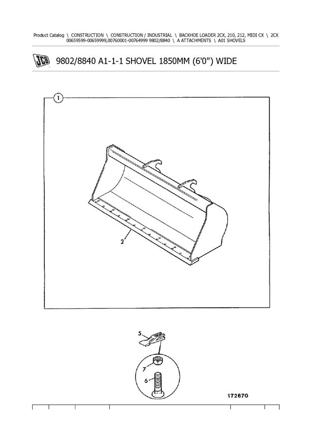 528/00400 Bucket assembly, 300mm(12") 1 1 528/00600 Bucket assembly,350mm(14") 1 1 528/00800 Bucket assembly, 400mm(16") 1 1 528/01000 Bucket assembly, 450mm(18") 1 1 528/01200 Bucket assembly, 600mm(24") 1 1 528/01400 Bucket assembly, 750mm(30") 1 2 **** None serviced part 1 2A ::141/00430 Toeplate 296mm wide 6 holes (Weld-On) 1 2A ::141/00431 Toeplate 346mm wide 6 holes (Weld-On) 1 2A ::141/00432 Toeplate 396mm wide 6 holes (Weld-On) 1 2A ::141/00433 Toeplate 446mm wide 6 holes (Weld-On) 1 2A ::141/00434 Toeplate 596mm wide 8 holes (Weld-On) 1 2A ::141/00435 Toeplate 746mm wide 10 holes (Weld-On) 1 2B ::141/00633 Sidecutter left hand Used on all buckets on this page. 1 2C ::141/00634 Sidecutter right hand Used on all buckets on this page. 1 3 :531/03205 Tooth 300mm, 350mm,400mm,450mm buckets. 3 3 :531/03205 Tooth 600mm bucket. 4 3 :531/03205 Tooth 750mm bucket 5 4 :826/00303 Bolt Plough 300mm,350mm,400mm,450mm buckets. 6 4 :826/00303 Bolt Plough 600mm bucket 8 4 :826/00303 Bolt Plough 750mm bucket. 10 5 :1340/0701 Nut 300mm,350mm,400mm,450mm buckets. 6 5 :1340/0701 Nut 600mm bucket. 8 5 :1340/0701 Nut 750mm bucket. 10
