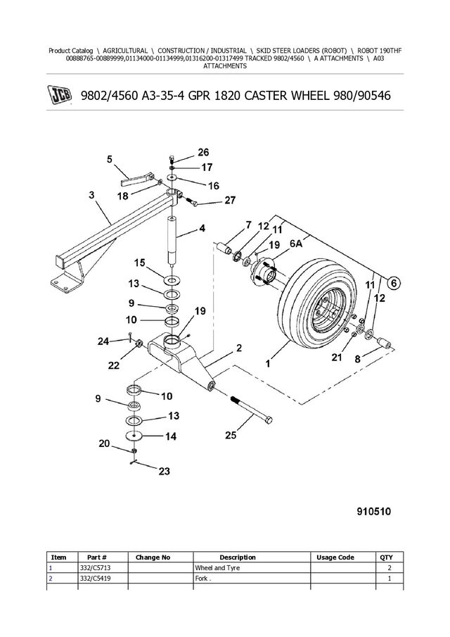 5 332/C5681 Handle . 1 6 332/C5711 Kit Hub, Bearing, Seal Includes 6A, 11, 12 1 6A :332/C5712 Hub with Studs 2 7 332/C5381 Spacer long 1 8 332/C5383 Spacer short 1 9 332/C5567 Bearing cone 1 10 332/C5568 Bearing cup 2 11 332/C5569 Bearing cone 2 12 332/C5565 Grease shell 2 13 332/C5576 Washer felt 2 14 332/C5392 Washer . 1 15 332/C5571 Washer . 1 16 332/C5389 Washer . 1 17 332/C5574 Washer . 1 18 332/C5578 Washer . 1 19 332/C5714 Grease Nipple 2 20 332/C5550 Nut castellated 1 21 332/C5566 Nut . 4 22 332/C5549 Nut castellated 1 23 332/C5525 Cotter . 1 24 332/C5526 Cotter pin 1 25 332/C5369 Bolt . 1 26 332/C5499 Bolt . 1 27 332/C5521 Bolt . 1