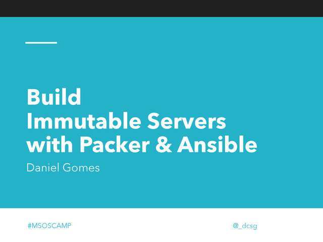 • No changes after it’s built. • Include scripts to start the application at boot. • Easy to scale out, deploy and rollback • Trustable and testable • Easy to adopt A/B testing, Canary releases or Blue/Green deployments @_dcsg #MSOSCAMP