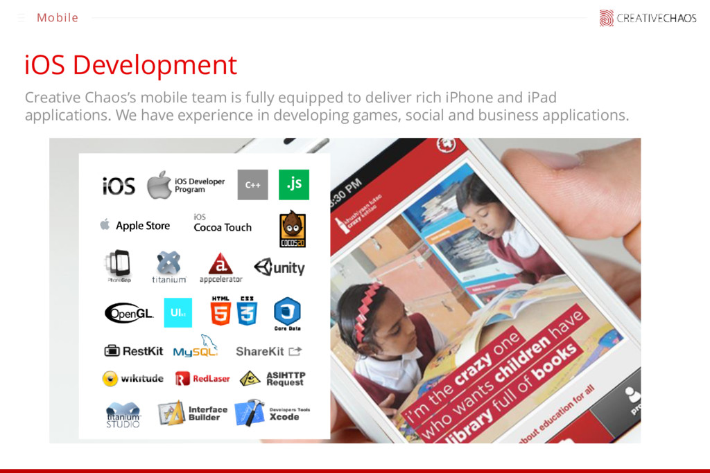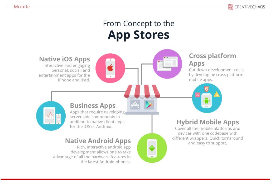 Interactive and engaging personal, social, and entertainment apps for the iPhone and iPad. Cross platform Apps Cut down development costs by developing cross platform mobile apps. Native Android Apps Rich, interactive android app development allows one to take advantage of all the hardware features in the latest Android phones. Hybrid Mobile Apps Cover all the mobile platforms and devices with one codebase with different wrappers. Quick turnaround and easy to support. Business Apps Apps that require developing server side components in addition to native client apps for the iOS or Android.