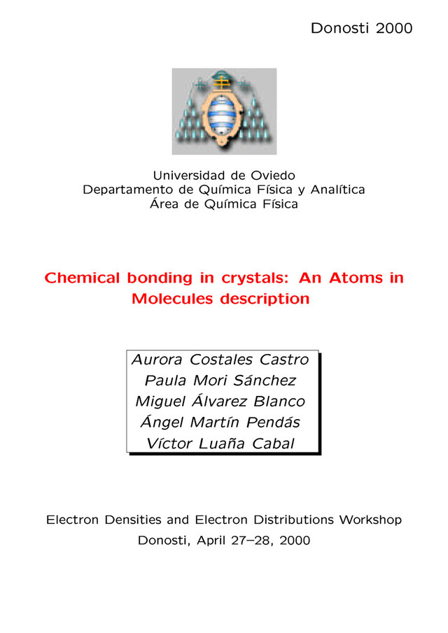 ¢ ¥ ! ¡ § ¥ i 254 H h i 2 1 A A }| 9 D 4 A 4¤£ 6 2 f 684 ¥ 0.1910 0.1915 0.1920 0.1925 0.1930 0.1935 0.1940 0.1945 0.1950 0.1955 0.135 0.140 0.145 0.150 0.155 0.160 0.165 0.170 -4.0 -3.5 -3.0 -2.5 -2.0 -1.5 -1.0 -0.5 0.0 6.0 6.2 6.4 6.6 6.8 7.0 7.2 7.4 xc (cryst. units) ln(ρ), ln(∇2ρ) (a.u.) 1/a (bohr-1) a (bohr) ln(ρ) ln(∇2ρ) b-point position p 2¨6 f§¦ D H A©¨ i i n ¥ W( h 2 ¨ 684 T ¦7D 4RH Q 2 ¨BA 4! A I n " k $# 6% ¦5D 4 H D 1 H A 1 0.001 0.01 0.1 1 10 1.0 1.5 2.0 2.5 3.0 3.5 4.0 ρb (e/Å3) ROO (Å) aiPI: Several crystals aiPI interpolation Several molecules O2 (g) Crytalline regime Molecular regime −1.2 −1.0 −0.8 −0.6 −0.4 −0.2 0.0 0.2 0.4 2 3 4 5 6 7 8 arctg(∇2ρb /u) (u = 1 e/bohr5) ROO (bohr) O2 (g) Several crystals, aiPI Several molecules Shared Interactions Closed-shell Interactions C CxH F Ged1HQP @BC F P'& I & H~@ ( A£CDP) F G T10 2 @BCFE P C F H4365 & F F G G E P HGgCFd d5@BCxH @ T T E 5 @75 F H43!0