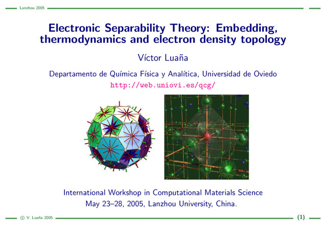 London Ser. A 253, 242 (1959). [2] S. Huzinaga and A. A. Cantu, J. Chem. Phys. 55, 5543 (1971). [3] S. Huzinaga, D. McWilliams, and A. A. Cantu, Adv. Quantum Chem. 7, 187 (1973). [4] V. Lua˜ na, M. Bermejo, M. Fl´ orez, J. M. Recio, and L. Pueyo, J. Chem. Phys. 90, 6409 (1989). [5] V. Lua˜ na and L. Pueyo, Phys. Rev. B 39, 11093 (1989). [6] V. Lua˜ na and L. Pueyo, Phys. Rev. B 41, 3800 (1990). [7] E. Francisco, A. Mart´ ın Pend´ as, and W. H. Adams, J. Chem. Phys. 97, 6504 (1992). [8] A. M. Pend´ as, E. Francisco, and J. M. Recio, J. Chem. Phys. 97, 452 (1992). [9] V. Lua˜ na, J. M. Recio, and L. Pueyo, Phys. Rev. B 42, 1791 (1990). [10] M. A. Blanco, E. Francisco, and V. Lua˜ na, Comput. Phys. Commun. 158, 57 (2004), source code distributed by the CPC program library: http://cpc.cs.qub.ac.uk/summaries/ADSY. [11] J. M. Recio, A. M. Pend´ as, E. Francisco, M. Fl´ orez, and V. Lua˜ na, Phys. Rev. B 48, 5891 (1993). [12] A. M. Pend´ as, V. Lua˜ na, J. M. Recio, M. Fl´ orez, E. Francisco, M. A. Blanco, and L. N. Kantorovich, Phys. Rev. B 49, 3066 (1994). [13] M. ´ Alvarez Blanco, Tesis doctoral, Universidad de Oviedo, 1997, director: V´ ıctor Lua˜ na Cabal. [14] M. A. Blanco, A. Costales, A. M. Pend´ as, and V. Lua˜ na, Phys. Rev. B. 62, 12028 (2000). [15] M. Fl´ orez, J. M. Recio, E. Francisco, M. A. Blanco, and A. M. Pend´ as, Phys. Rev. B 66, 144112/1 (2002). [16] V. Lua˜ na, J. M. Recio, A. M. Pend´ as, M. A. Blanco, L. Pueyo, and R. Pandey, Phys. Rev. B 64, 104102 (2001). [17] M. A. Blanco, A. Costales, V. Lua˜ na, and R. Pandey, Appl. Phys. Lett. 85, 4376 (2004). [18] R. F. W. Bader, Atoms in Molecules. A Quantum Theory (Oxford University Press, Oxford, 1990). [19] P. Mori-S´ anchez, Tesis doctoral, Universidad de Oviedo, 2002, directores: V´ ıctor Lua˜ na Cabal y Angel Mart´ ın Pend´ as. [20] V. Lua˜ na, A. Costales, P. Mori-S´ anchez, M. A. Blanco, and A. Mart´ ın Pend´ as, Acta Cryst. A. 60, 434 (2004). [21] P. Mori-S´ anchez, A. Mart´ ın Pend´ as, and V. Lua˜ na, J. Am. Chem. Soc. 124, 14721 (2002). [22] V. Lua˜ na, P. Mori-S´ anchez, A. Costales, M. A. Blanco, and A. Mart´ ın Pend´ as, J. Chem. Phys. 119, 6341 (2003). [23] A. Costales, M. A. Blanco, P. Mori-S´ anchez, V. Lua˜ na, and A. Mart´ ın Pend´ as, J. Phys. Chem. A 108, 2794 (2004). [24] A. M. Pend´ as, A. Costales, M. A. Blanco, J. M. Recio, and V. Lua˜ na, Phys. Rev. B. 62, 13970 (2000). c V. Lua˜ na 2005 (35)
