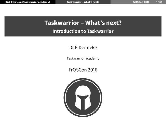 Dateformats – from ’man taskrc’ m minimal-digit month, for example 1 or 12 d minimal-digit day, for example 1 or 30 y two-digit year, for example 09 D two-digit day, for example 01 or 30 M two-digit month, for example 01 or 12 Y four-digit year, for example 2009 a short name of weekday, for example Mon or Wed A long name of weekday, for example Monday or Wednesday b short name of month, for example Jan or Aug B long name of month, for example January or August V weeknumber, for example 03 or 37 H two-digit hour, for example 03 or 11 N two-digit minutes, for example 05 or 42 S two-digit seconds, for example 07 or 47 The string may also contain other characters to act as spacers, or formatting. Examples for other values of dateformat: d/m/Y would use for input and output 24/7/2009 yMD would use for input and output 090724 M-D-Y would use for input and output 07-24-2009 Examples for other values of dateformat.report: a D b Y (V) would do an output as "Fri 24 Jul 2009 (30)" A, B D, Y would do an output as "Friday, July 24, 2009" vV a Y-M-D would do an output as "v30 Fri 2009-07-24" yMD.HN would do an output as "110124.2342" m/d/Y H:N would do an output as "1/24/2011 10:42" a D b Y H:N:S would do and output as "Mon 24 Jan 2011 11:19:42"