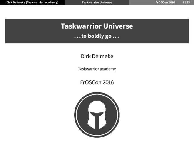 heck? Why give a talk about the Universe of a task management application? The answer is simple: Because there is so much more to explore apart from the flagship application Taskwarrior. We have many more applications and an interesting ecosystem of tools and services.