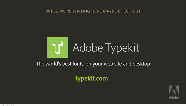 like forever Frequent speaker, pending author Not afraid to put his face on a 40’ screen @ddemaree Photo: Ryan Carver typekit.com Friday, September 13, 13