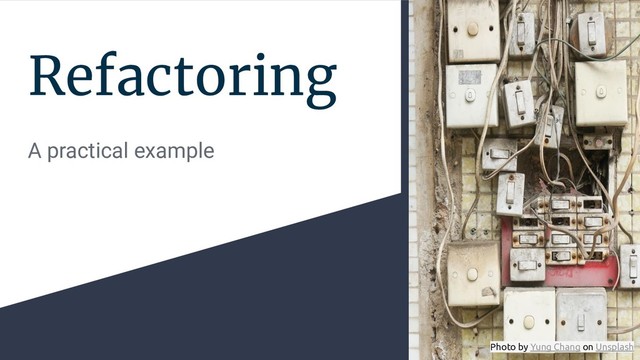 yet, after we do something. ➔ Not rewriting We’re moving code, not changing functionality ➔ Iterative Run test. Tinker (move code, rename). Run test. Repeat. ➔ Requires test When you have tests you can refactor without fear.
