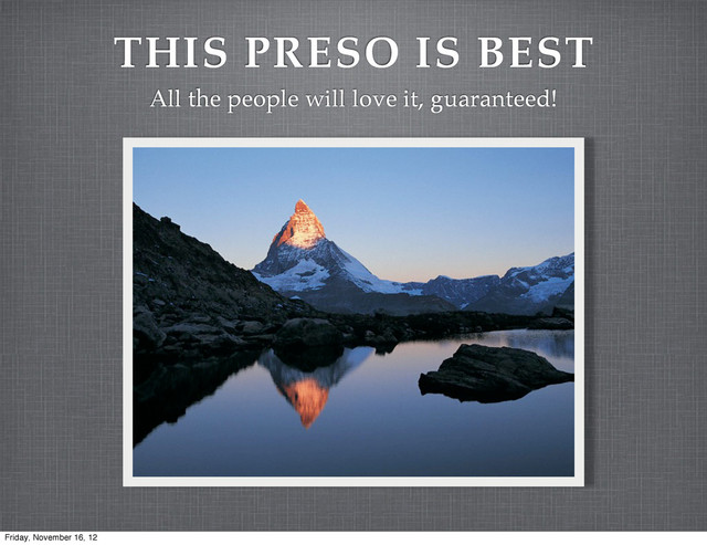 guaranteed! Friday, November 16, 12