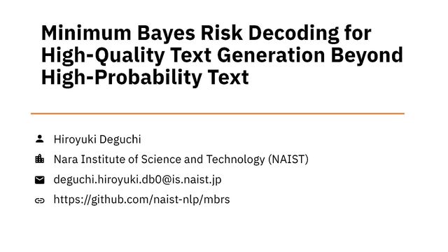⚫ (Cheng&Vlachos, EMNLP2023) ◼ ⚫ (Trabelsi+, 2024) DeNero+, ACL2009, “Fast Consensus Decoding over Translation Forests”. Vamvas&Sennrich, ACL2024, “Linear-time Minimum Bayes Risk Decoding with Reference Aggregation”. Deguchi+, Findings of ACL2024, “Centroid-Based Efficient Minimum Bayes Risk Decoding”. Cheng&Vlachos, EMNLP2023, “Faster Minimum Bayes Risk Decoding with Confidence-based Pruning”. Trabelsi+, 2024, “Efficient Minimum Bayes Risk Decoding using Low-Rank Matrix Completion Algorithms”.