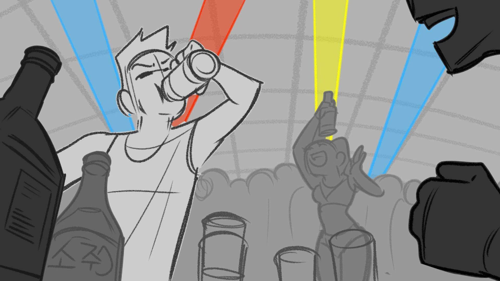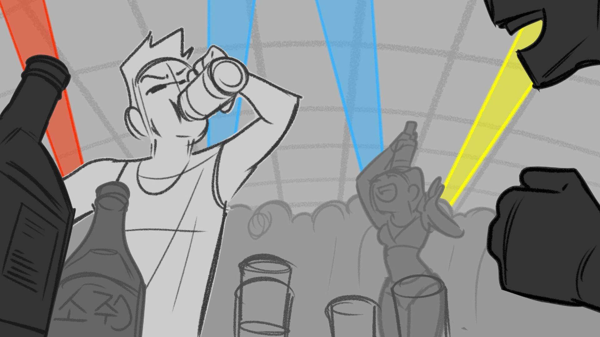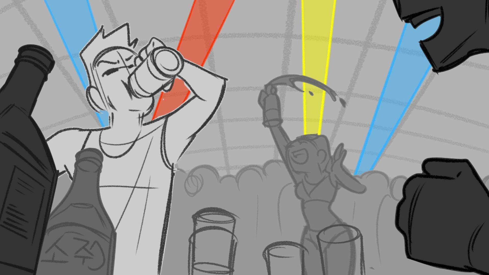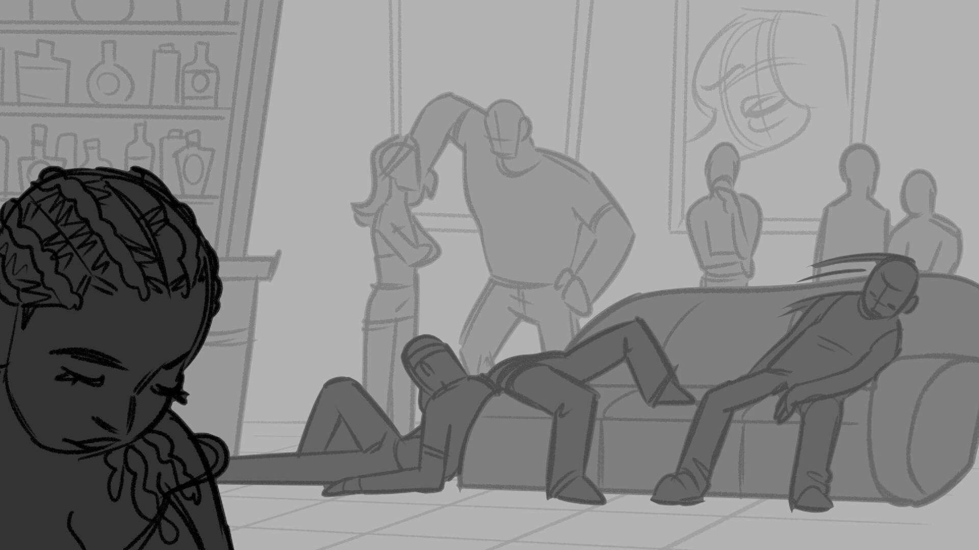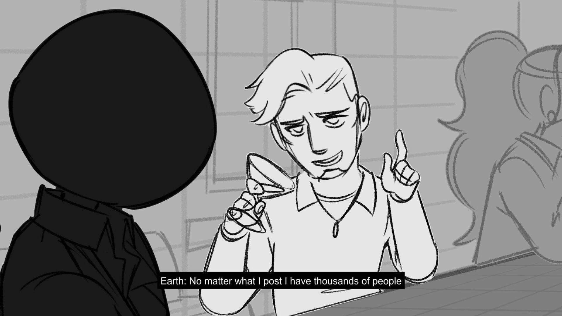 Sequence of the influencers, characters having fun, and tiring themselves out at a club. And a heart-felt conversation between Grim and Earth.