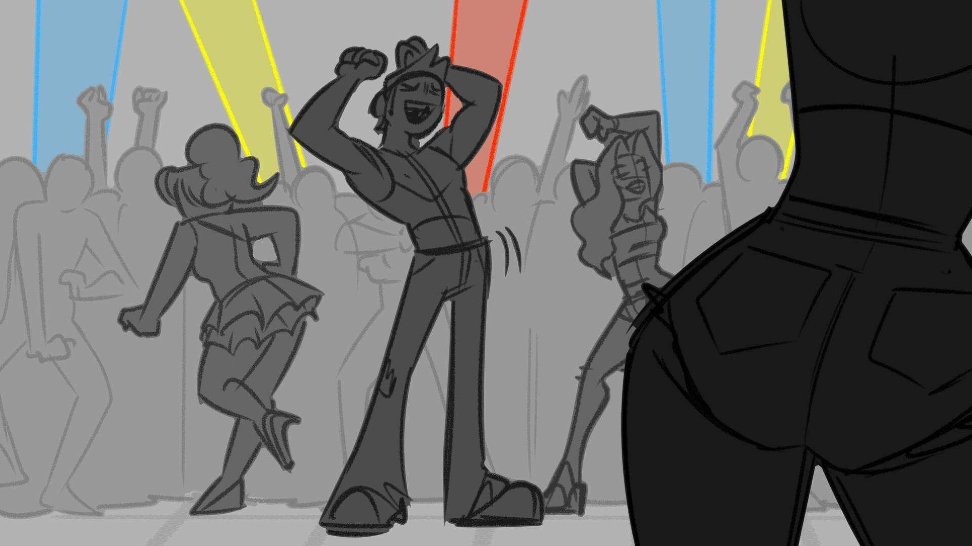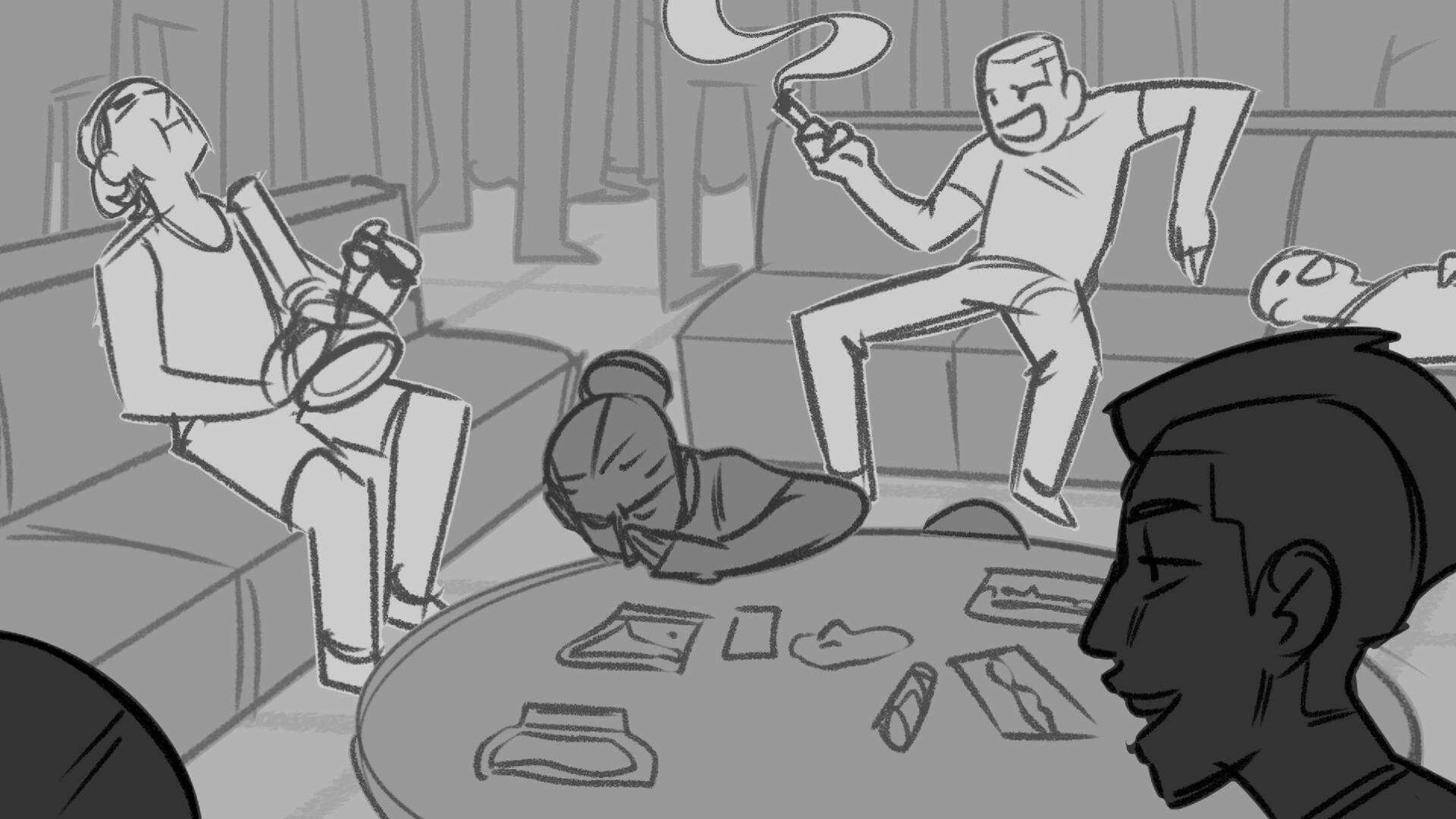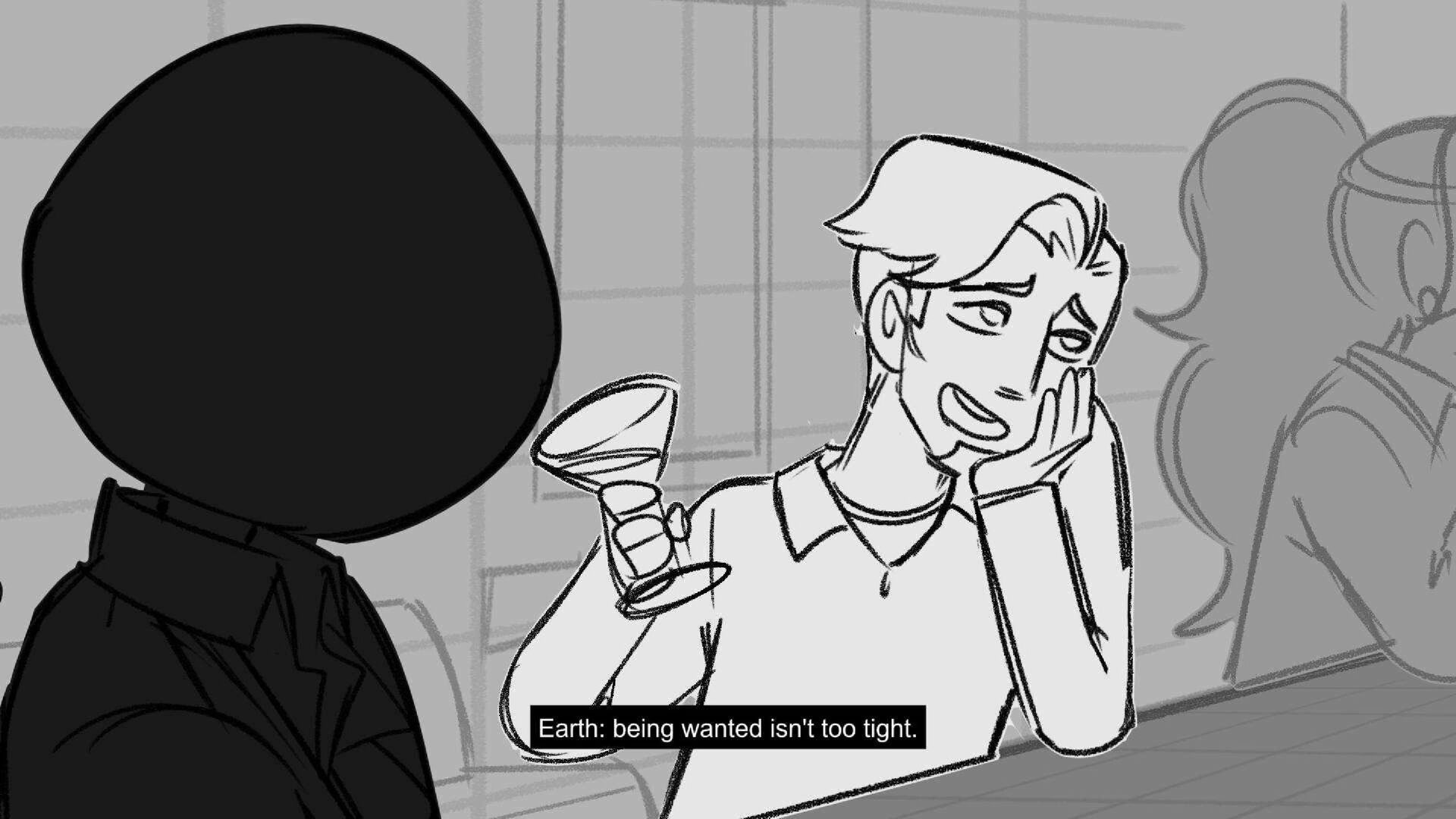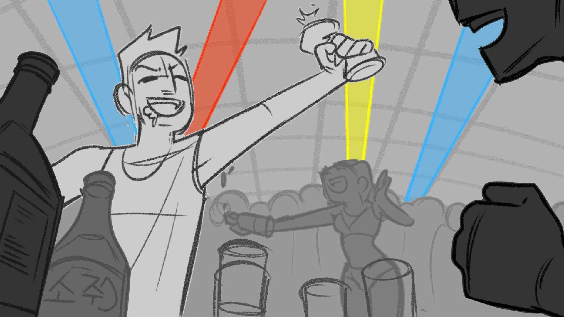 Sequence of the influencers, characters having fun, and tiring themselves out at a club. And a heart-felt conversation between Grim and Earth.