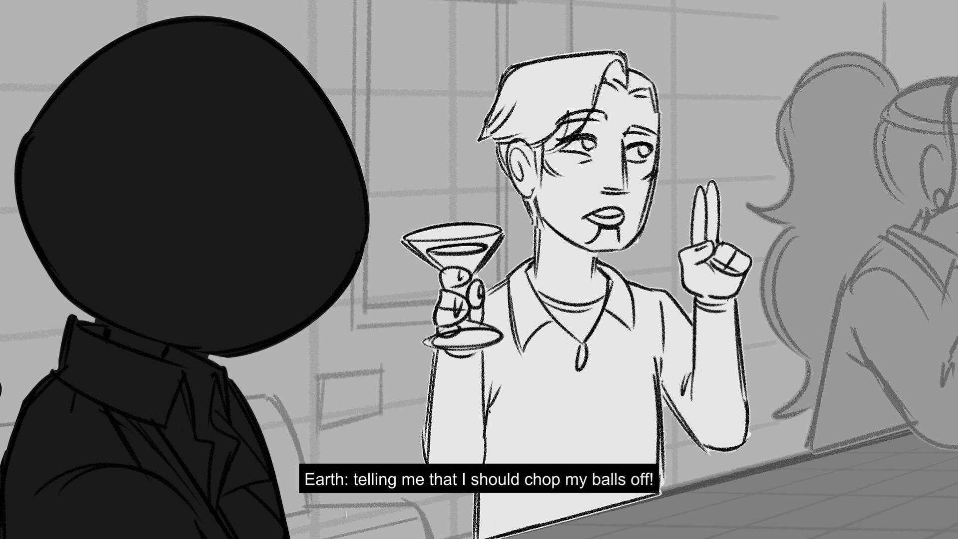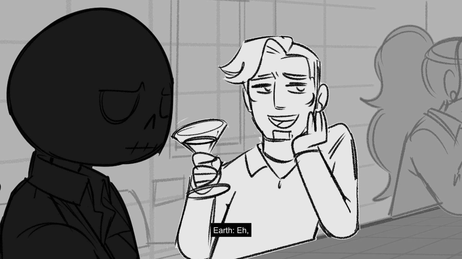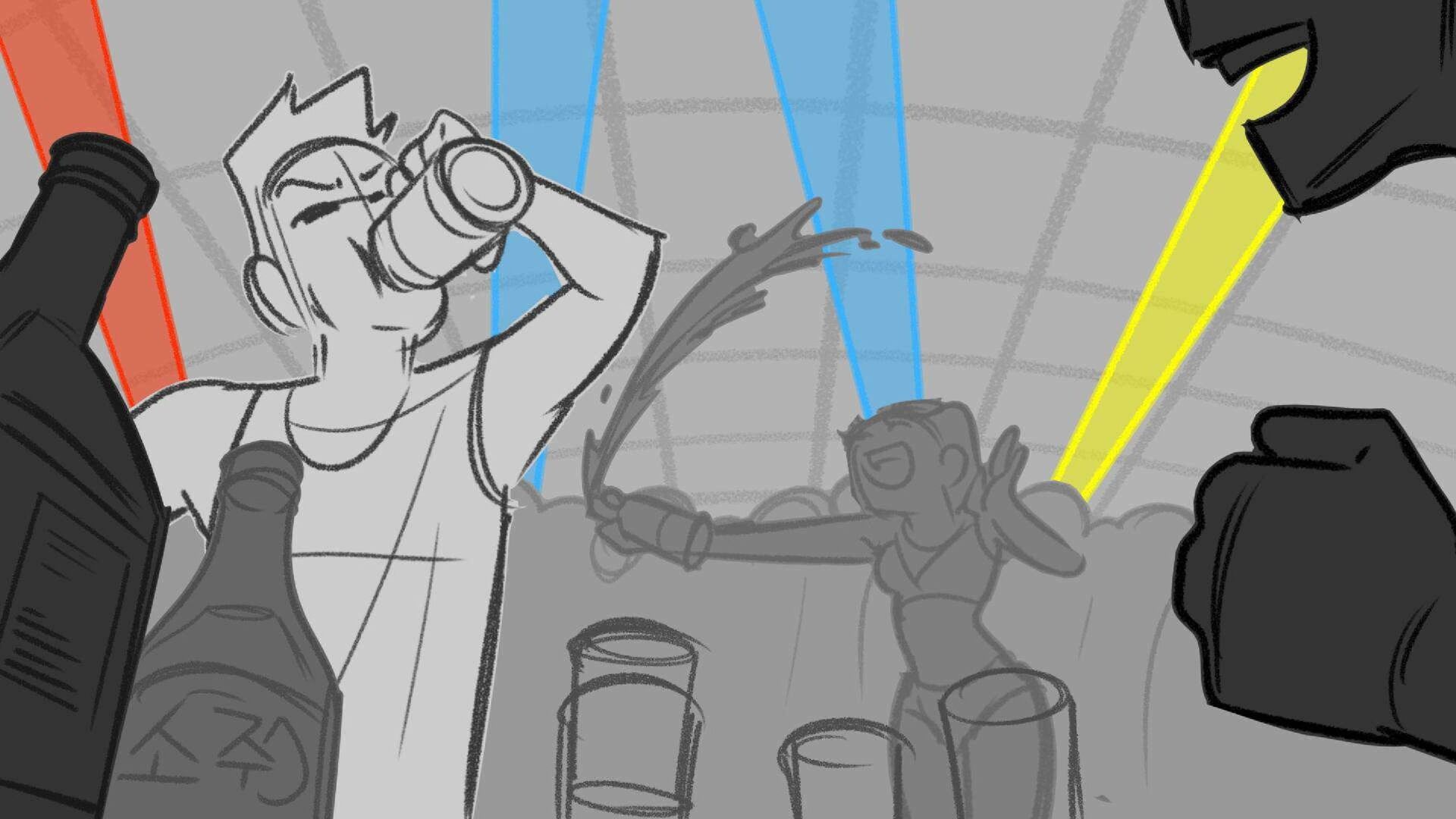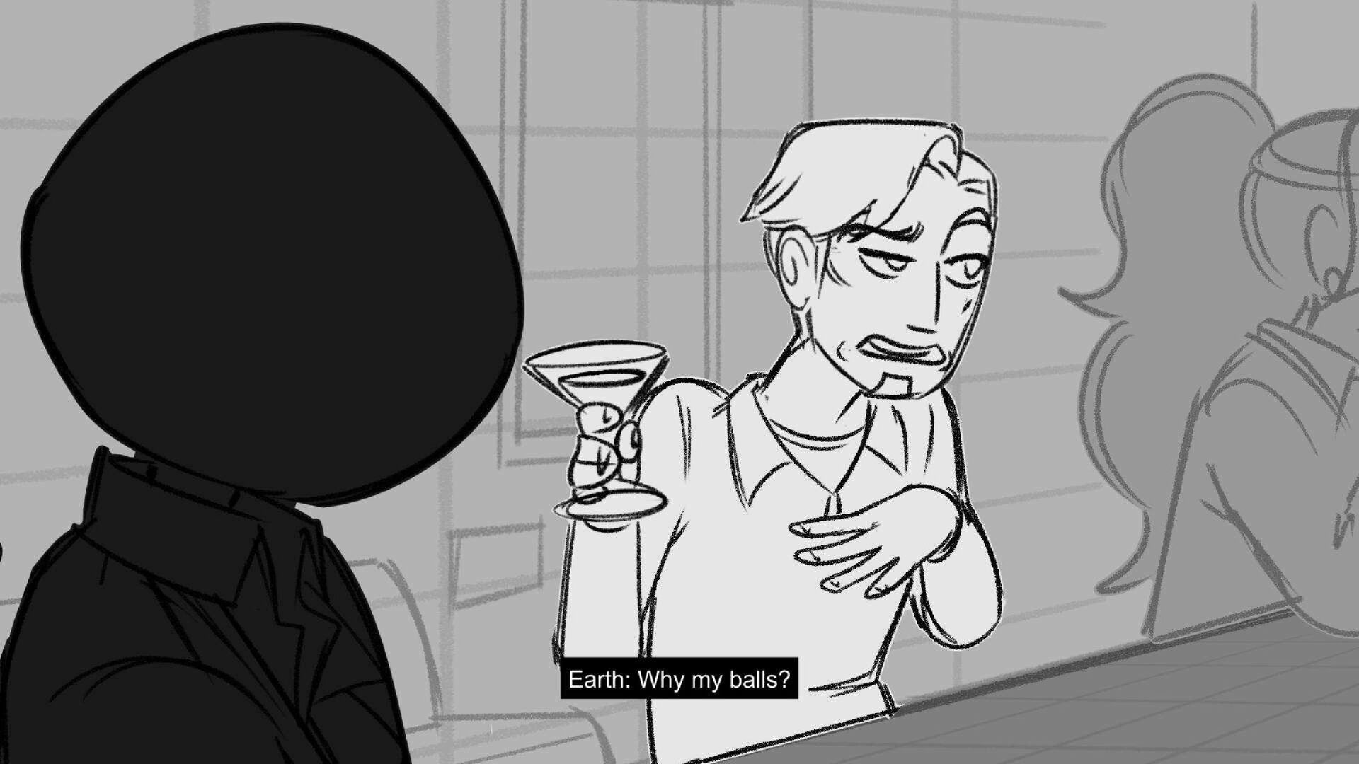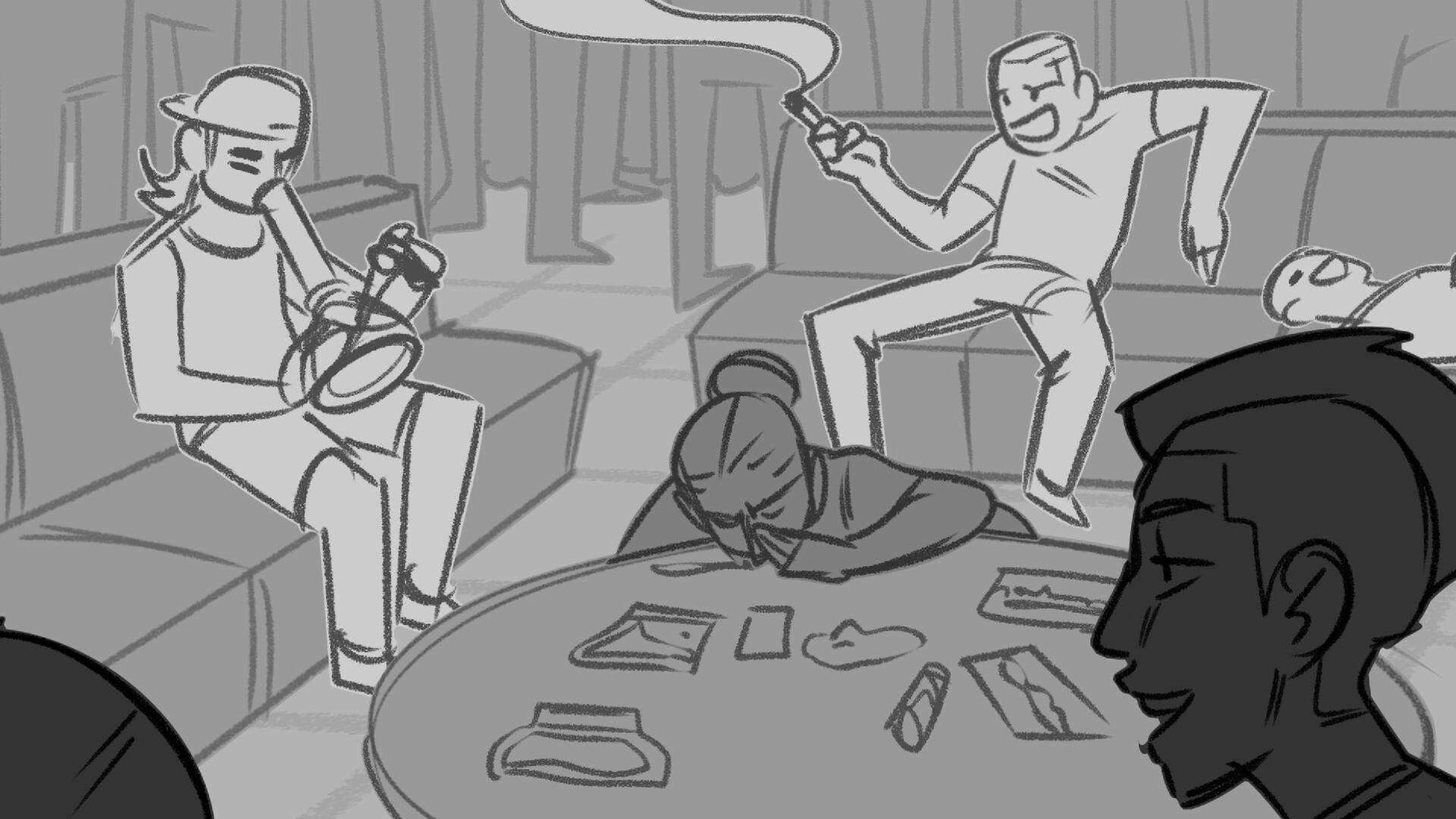 Sequence of the influencers, characters having fun, and tiring themselves out at a club. And a heart-felt conversation between Grim and Earth.